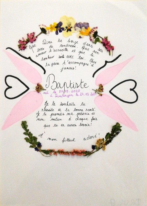 Qu’est-ce qu’un Goettelbrief ? Il s’agit d’une lettre adressée lors du baptême par le parrain ou la marraine à son filleul et qui, en Alsace du Nord, est devenu un véritable objet d’art. Le défi d’un produire un (qui pouvait utiliser des symboles de toutes les religions) dans le temps court du concours a révélé parmi les participants de vrais artistes en herbe. Le jury, bien qu’aidé par Michèle Wagner, artiste qui réalise elle-même des Goettelbrief, a eu de la peine à départager les meilleures productions.