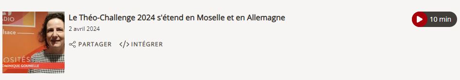 Chaque année, le 1er avril, les services de l’Enseignement religieux Catholique et Protestant en Alsace dévoilent les résultats du Théo-Challenge, ce concours qui proposent aux élèves de 3ème de mettre au défi leurs connaissances des religions. Nouveauté en 2024 : un établissement en Moselle et en Allemagne ont concouru. Dominique Gounellle, professeure de religion protestante en Alsace et en Moselle présente sur RCF les lauréats alsaciens.